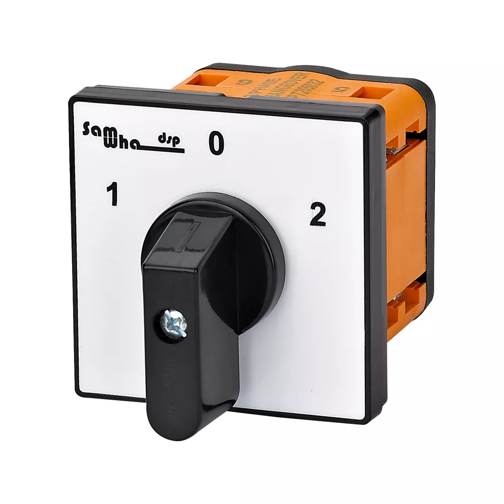 Este interruptor de comutação possui três posições de operação: 1, 0 e 2. Ele permite alternar entre duas fontes de alimentação ou controlar diferentes circuitos em um único dispositivo. A posição “0” indica o estado desligado, enquanto as posições “1” e “2” são usadas para comutar entre as diferentes fases ou fontes de energia, proporcionando versatilidade e controle preciso. Ideal para aplicações que exigem alternância de fontes ou controle simultâneo de duas cargas.